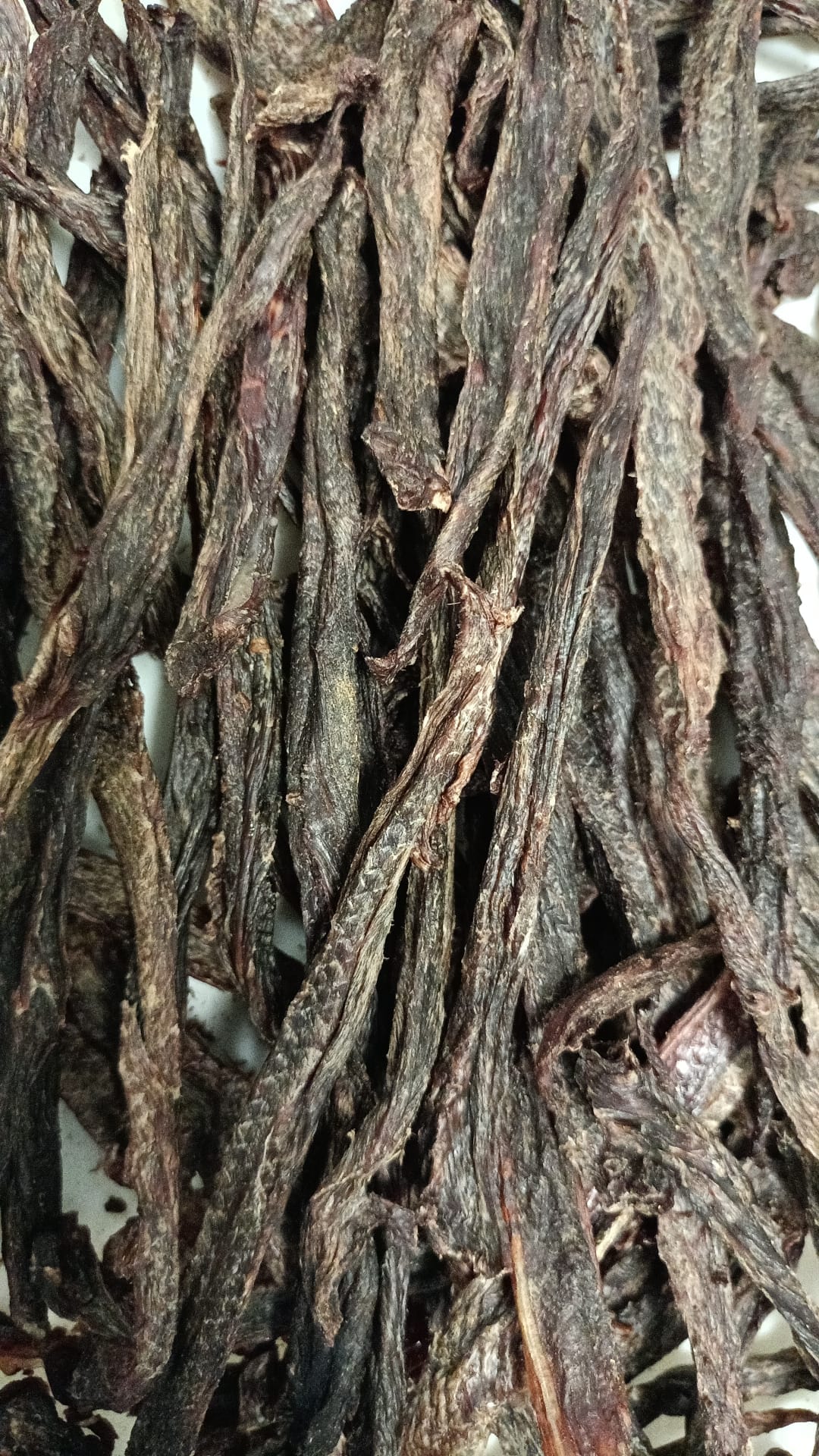 Carne di manzo fresca, tagliata in strisce ed essiccata lentamente – anche in formati a richiesta – con foglie tritate di salvia, pianta officinale cui vengono attribuite proprietà antisettiche, antinfiammatorie e diuretiche.